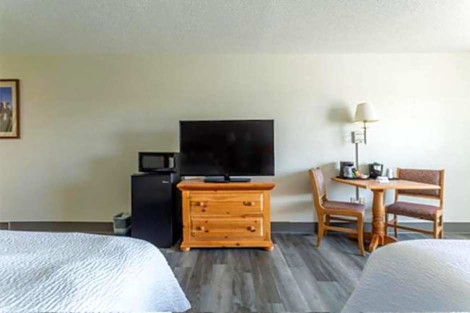 This room includes a microwave, a refrigerator and a cable TV.